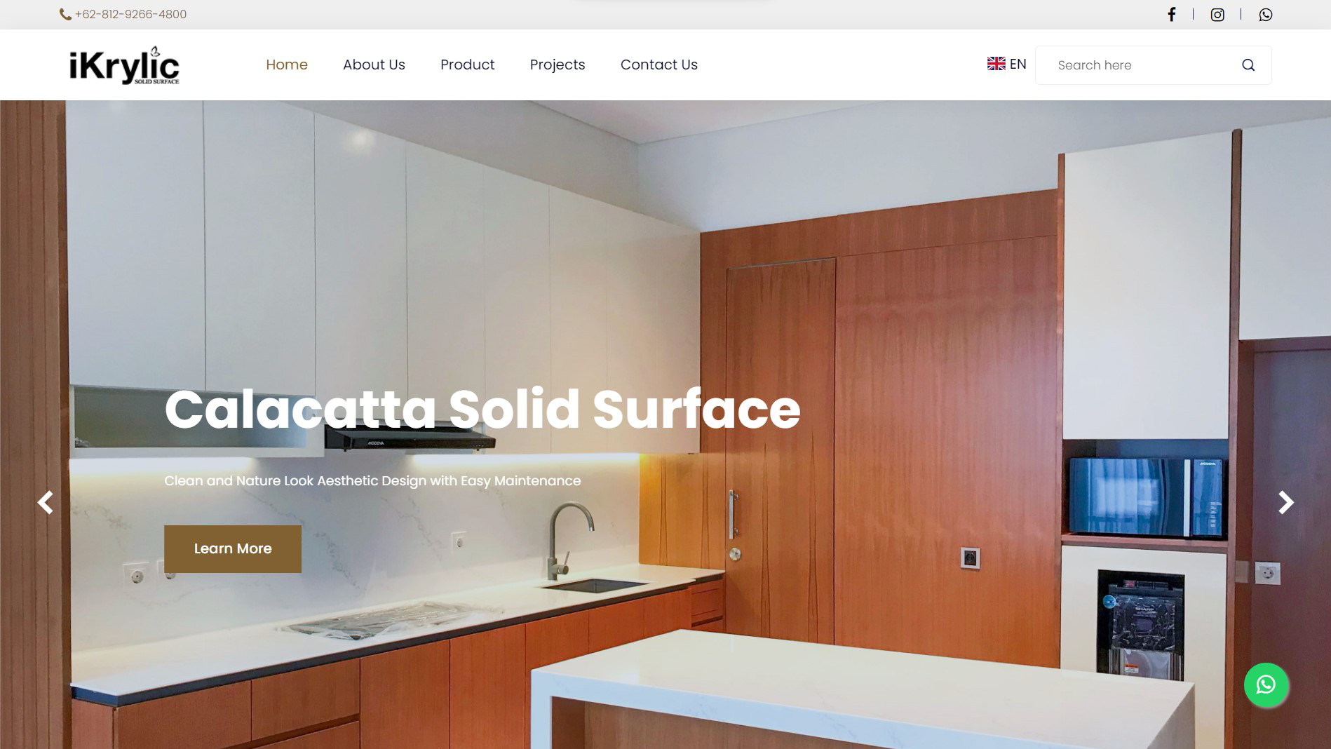 Website design and development for iKrylic product catalog and portfolio showcase.